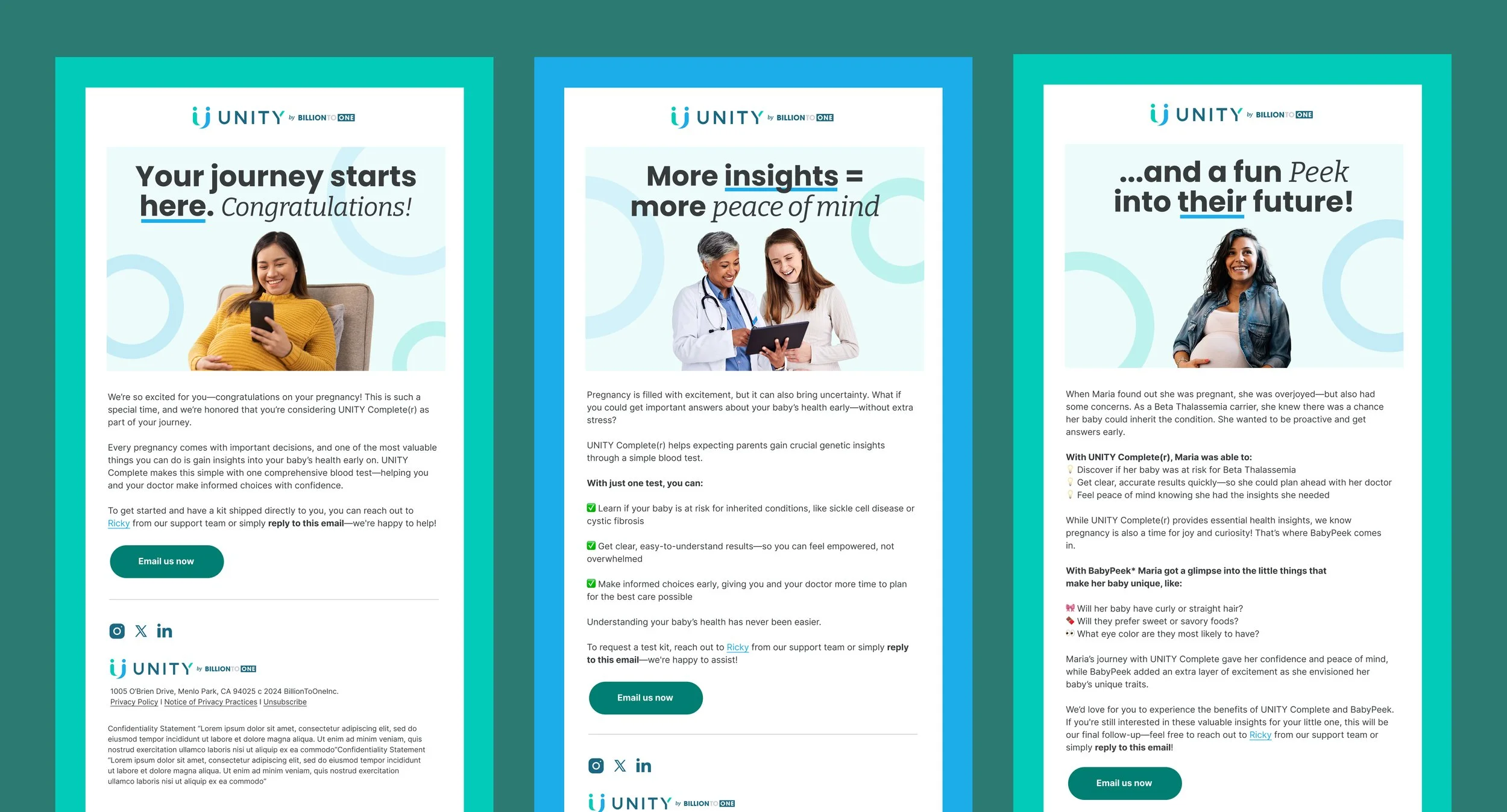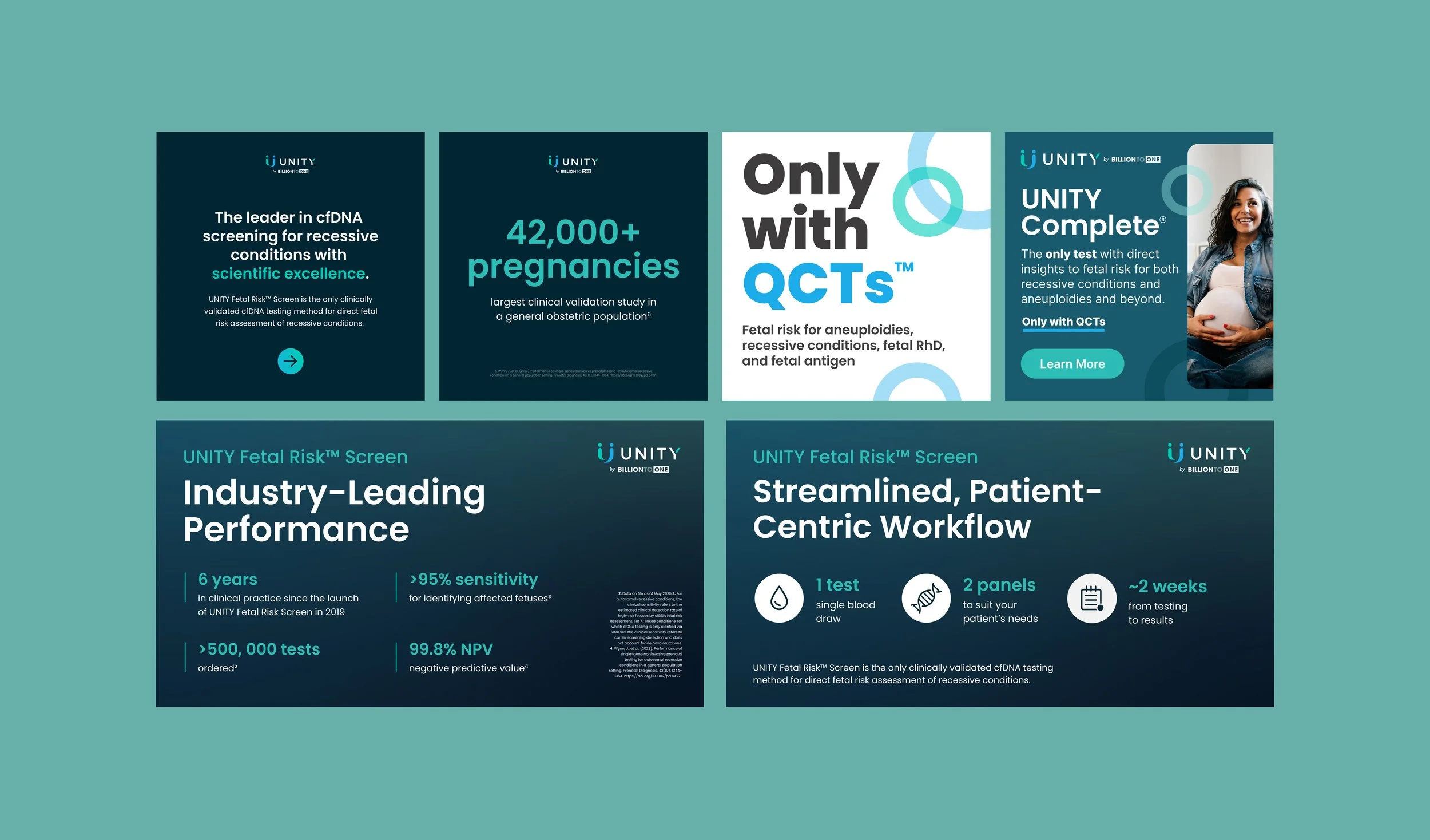 I collaborated with BillionToOne on their print and digital marketing materials. This includes email campaigns, paid ads, one-pagers, slide presentations, and more.